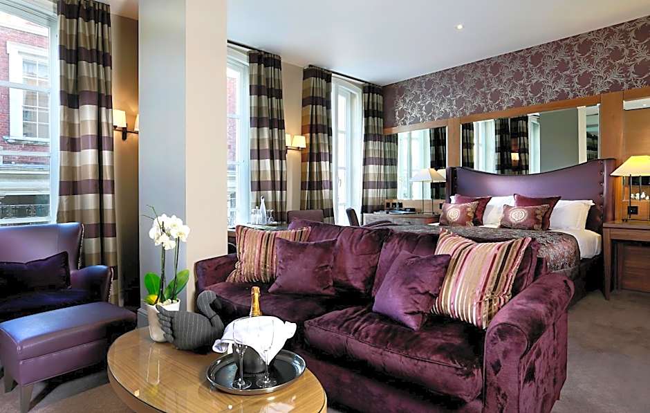 You'll find a super king-size bed, sofa and chairs, large bathroom with walk in drench shower, balcony, double sinks and separate bath. The Suite has a work space area, Elemis toiletries, FREE WiFi, complimentary tea, coffee and mineral water, and a flat screen TV.